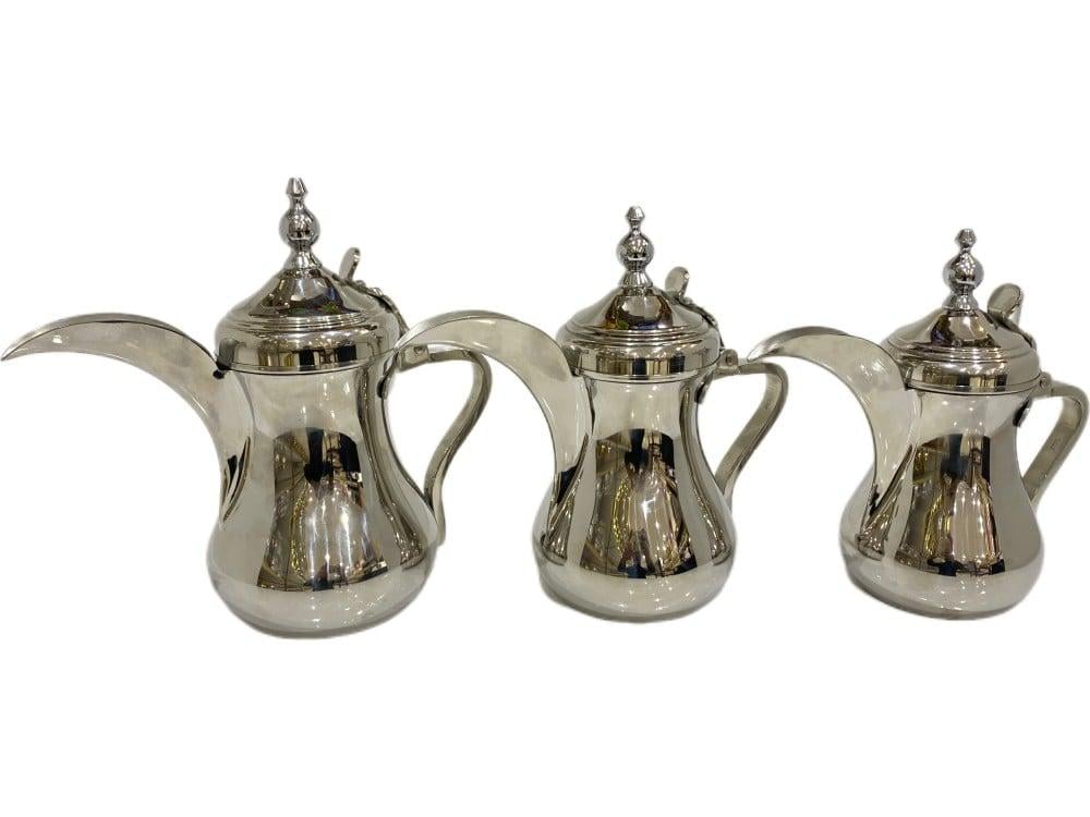 المواصفات : دلة العساف بغدادي مصنوعة من الستيل الصافي تاتي بثلاث مقاسات مختلفة اللون فضي بالكامل